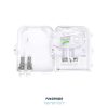 Sistema de empalme para fusiones de fibra óptica. Permite proteger empalmes ópticos y realizar derivaciones fácilmente dentro de las redes de FTTx. Su estructura presenta excelente resistencia mecánica capaz de prevenir eficazmente el envejecimiento producto de la temperatura y los rayos UV.